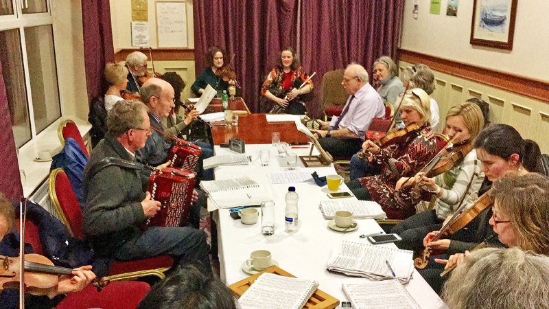 Participants learn a new tune in the first hour, and the Learners' Session is in the second hour.