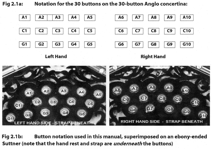 First, let us show you the simple concertina button notation used throughout the manual. It's really easy (the illustration below is from Chapter Two):